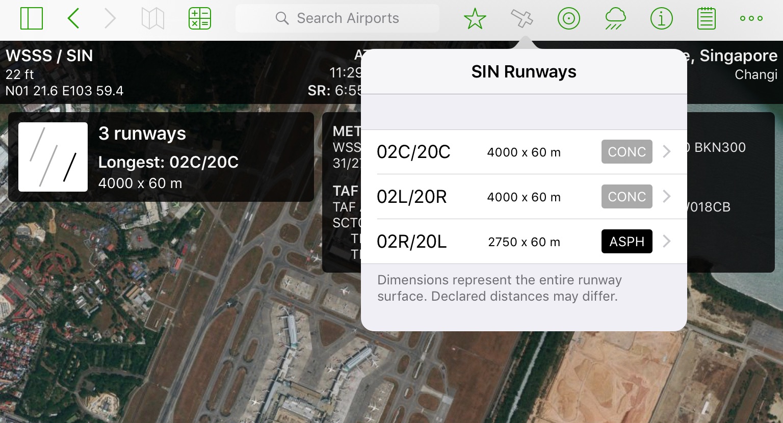 Take note, while getting aeronautical information with the Airports app is really simple, to keep yourself legal, only use the information in the Airports app as reference. Always reference official aeronautical data before and after despatch!)