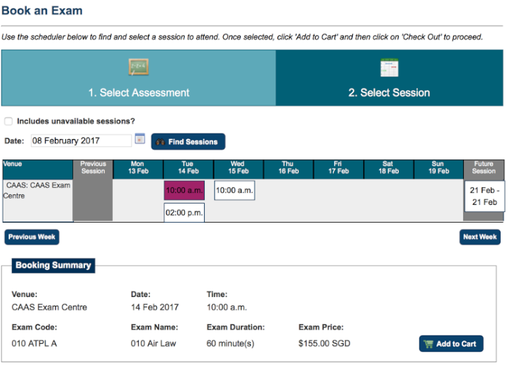10 On this page, select the time slot you’ll like to take your paper. Once selected, you can add that session to cart. Take note; you should be able to add multiple exams into your cart!)